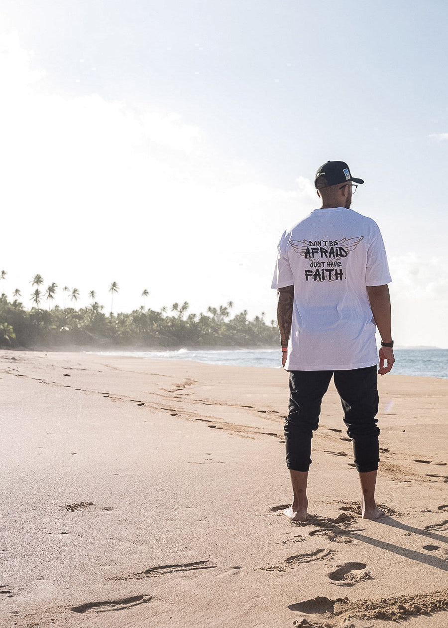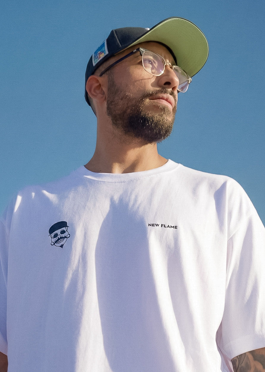 La MAJESTIC × NEW FLAME - “FAITH” Oversize 100% algodón es una pieza creada junto a nuestro embajador Majestic, diseñada para representar actitud, superación y confianza total en tu camino.